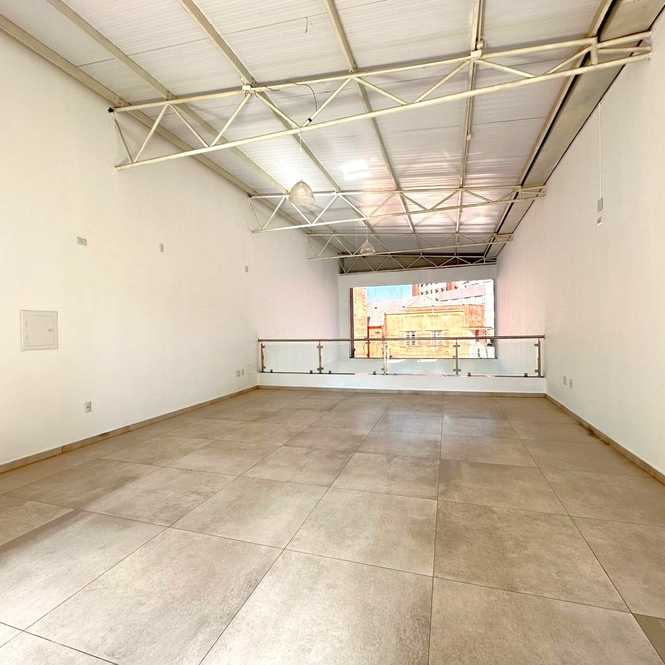 Sala comercial, com mezanino, em uma localização estratégica, rodeada por movimento e visibilidade.