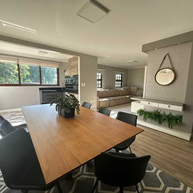 Área de Jantar (possui adega de bebidas com cristaleira e bar, mesa de jantar com 10 lugares);