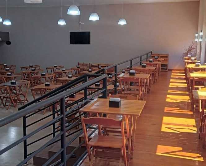 Salão (52 mesas, 125 cadeiras, 01 Buffet Quente, 02 Buffet Frios, Pratos, Talheres, Balança);