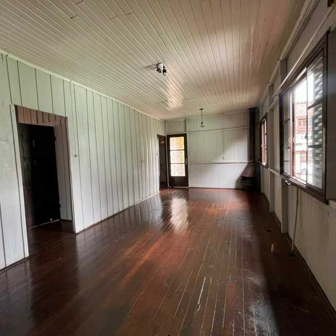 Casa de madeira localizada em um bairro na saída da cidade, ideal para quem busca sossego sem abrir mão da praticidade, em via asfaltada, próximo a mercado e farmácia.